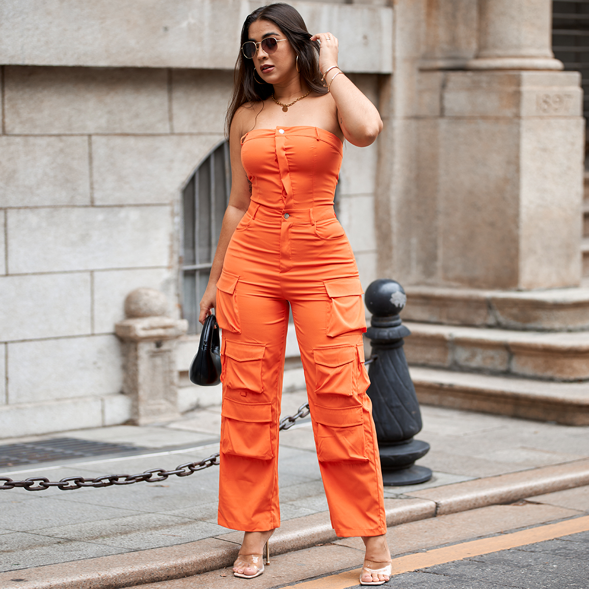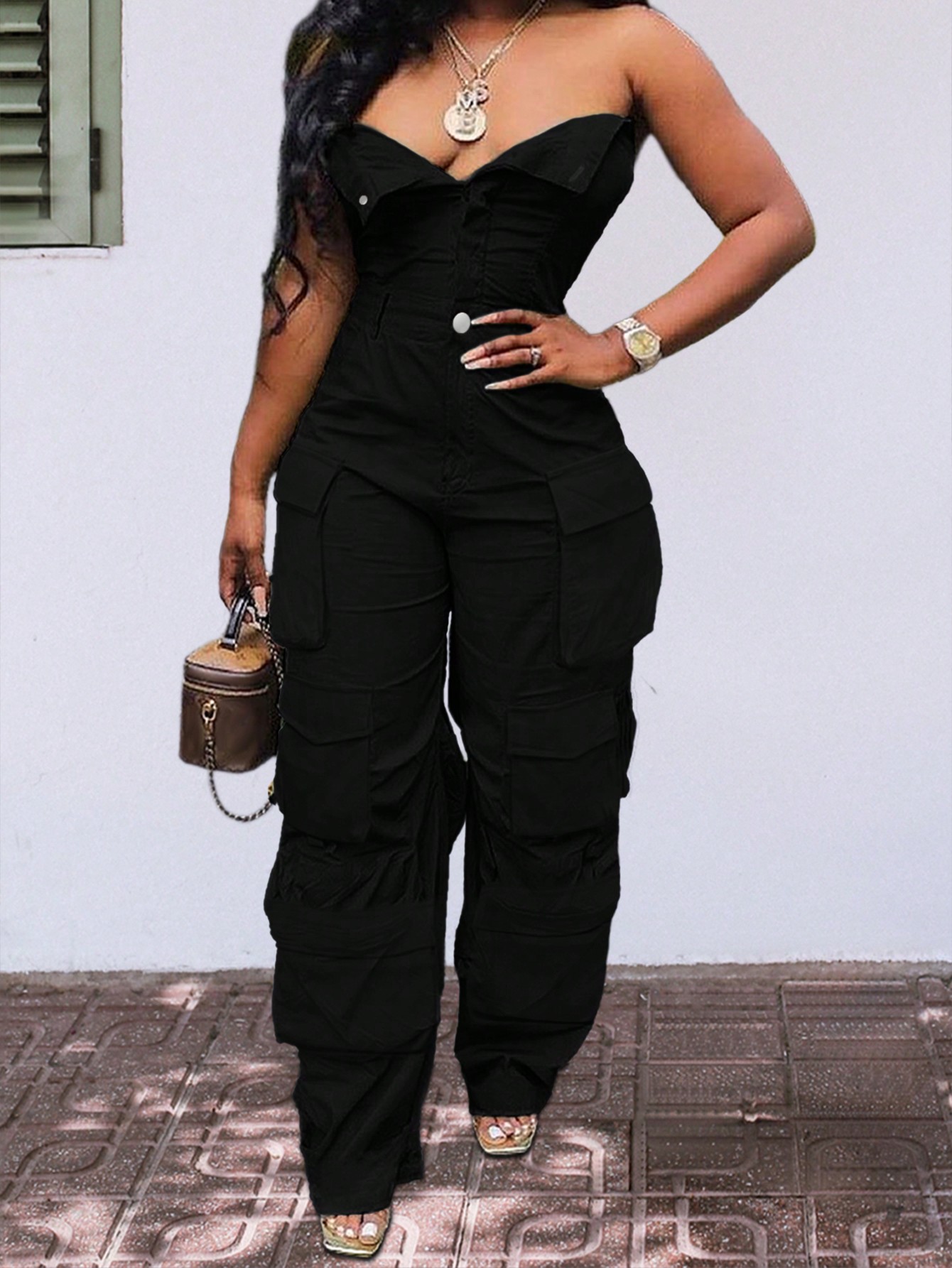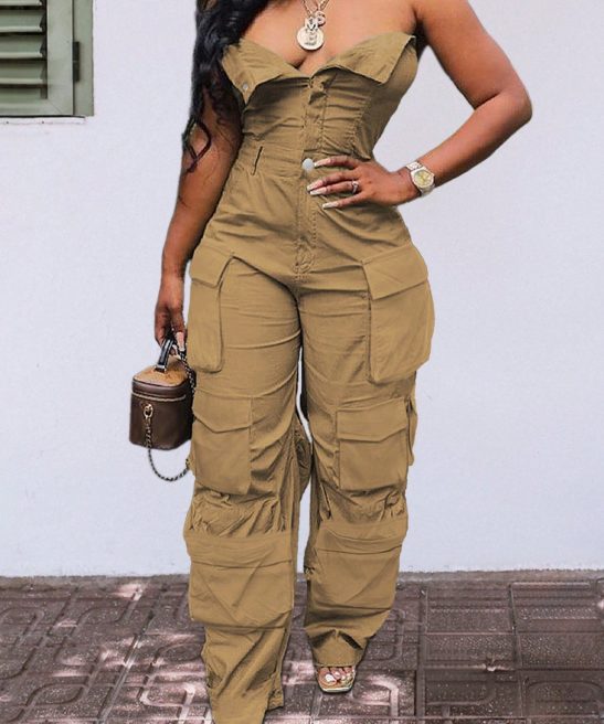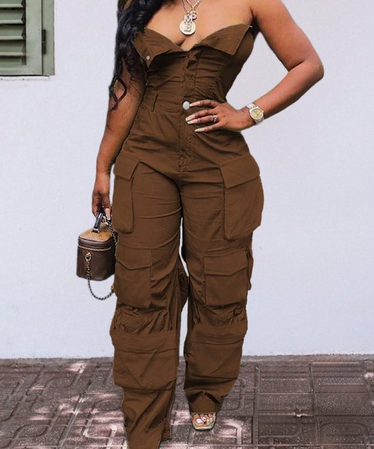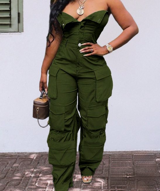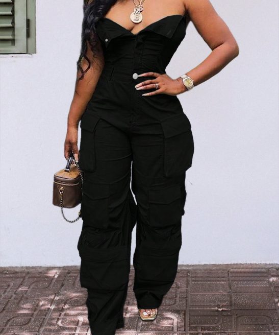 Be the first to review “Solid Color Casual Overalls Sexy Straight Tube Top Long Jumpsuit With Pockets” Cancel reply
