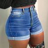 Women High Waisted Button Closure Slim Fit Ripped Denim Shorts