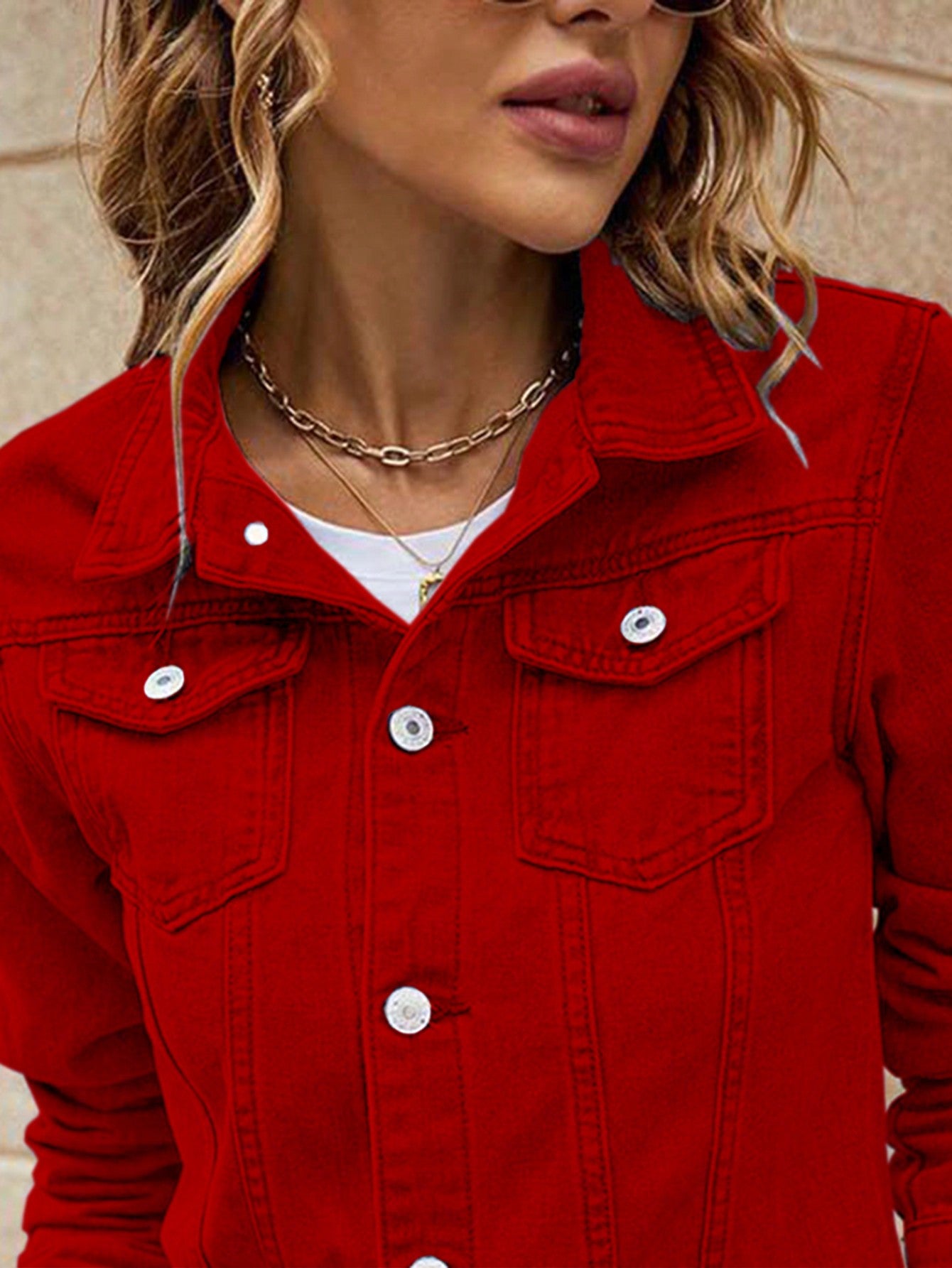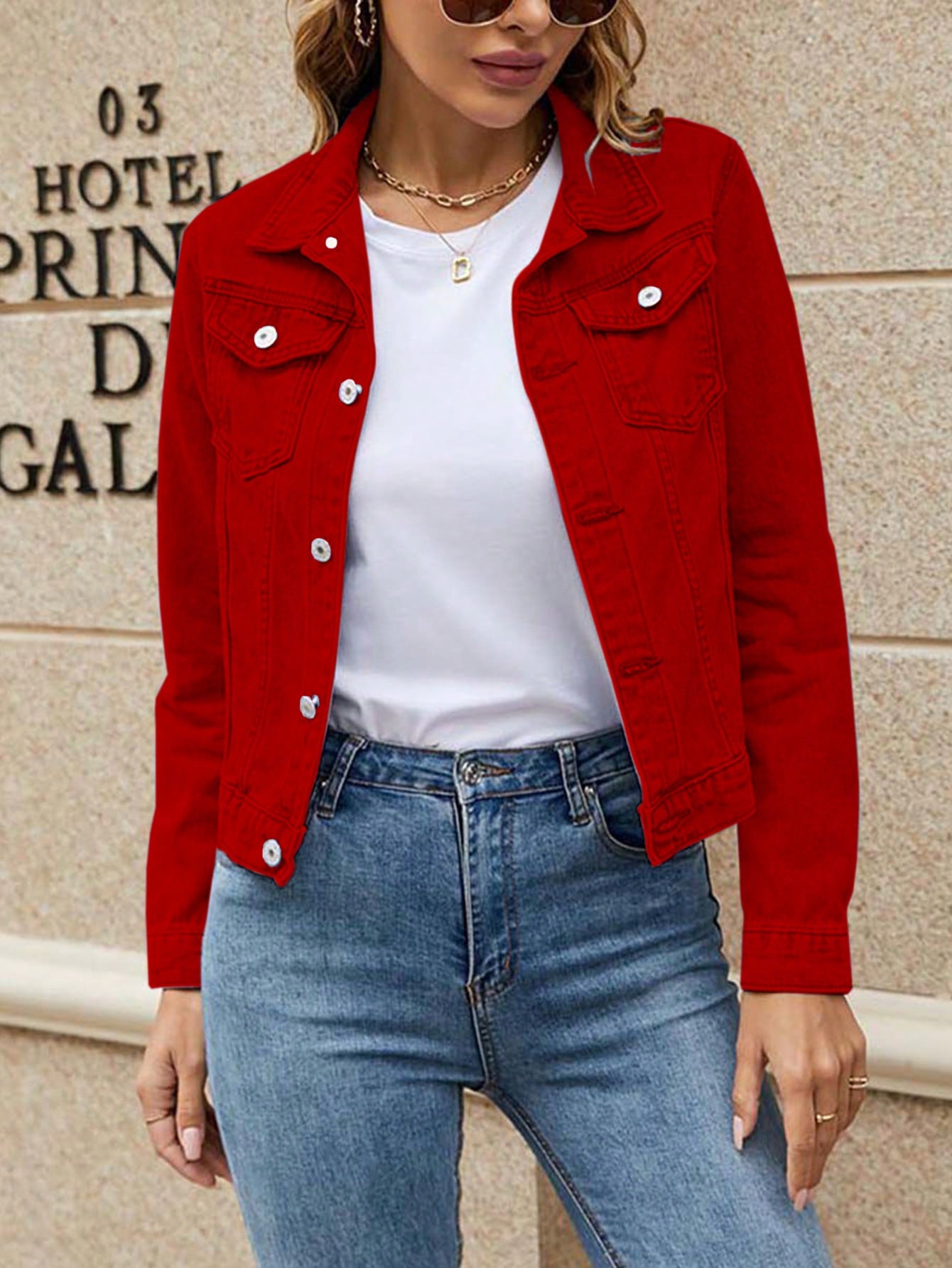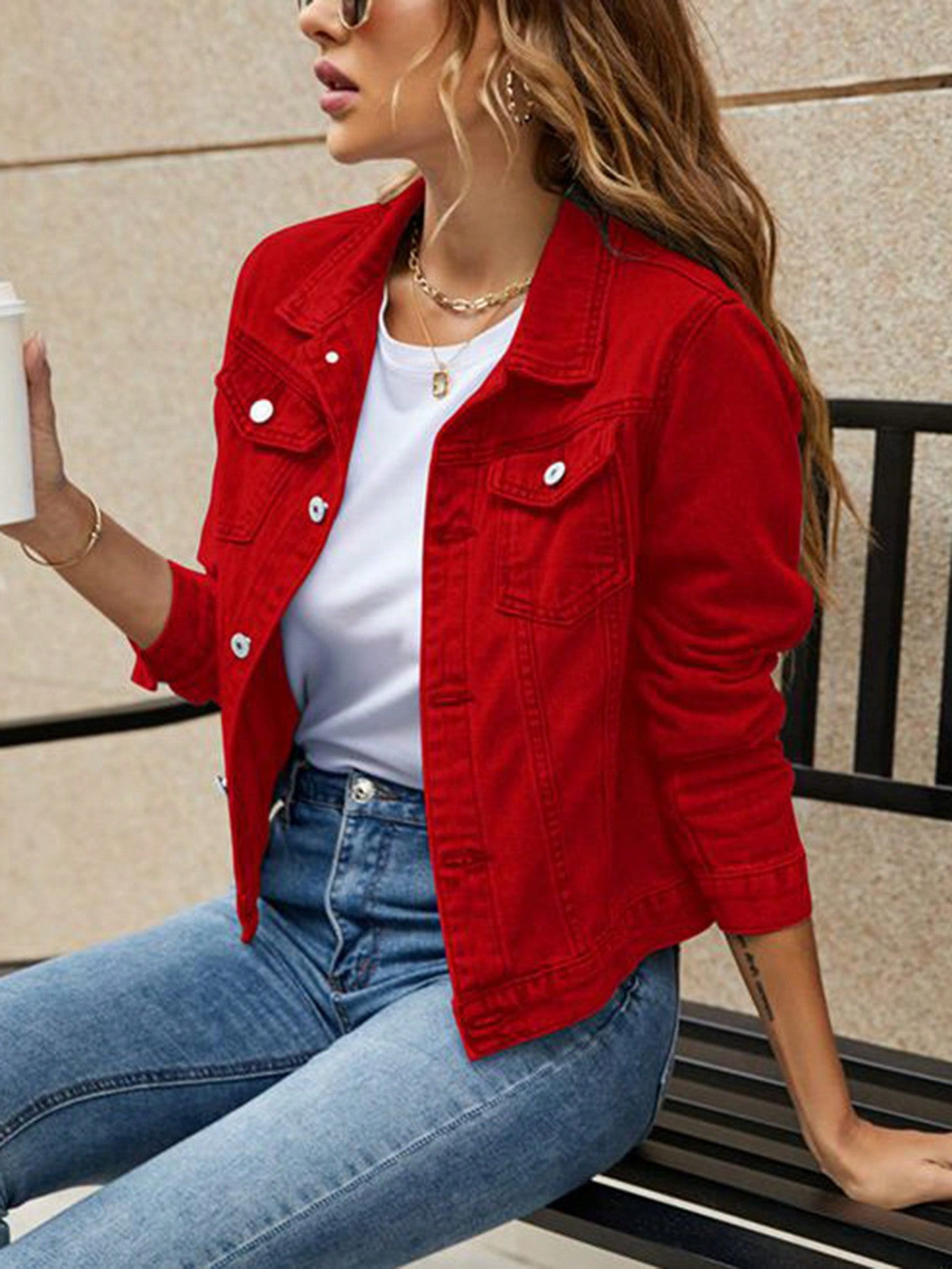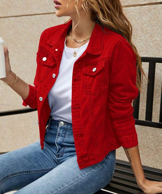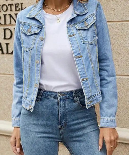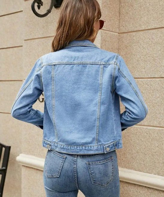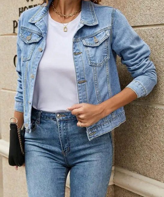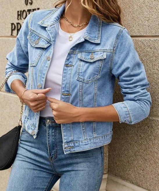 Be the first to review “Womens Denim Jacket Single Button Classic Solid Color With Pockets” Cancel reply