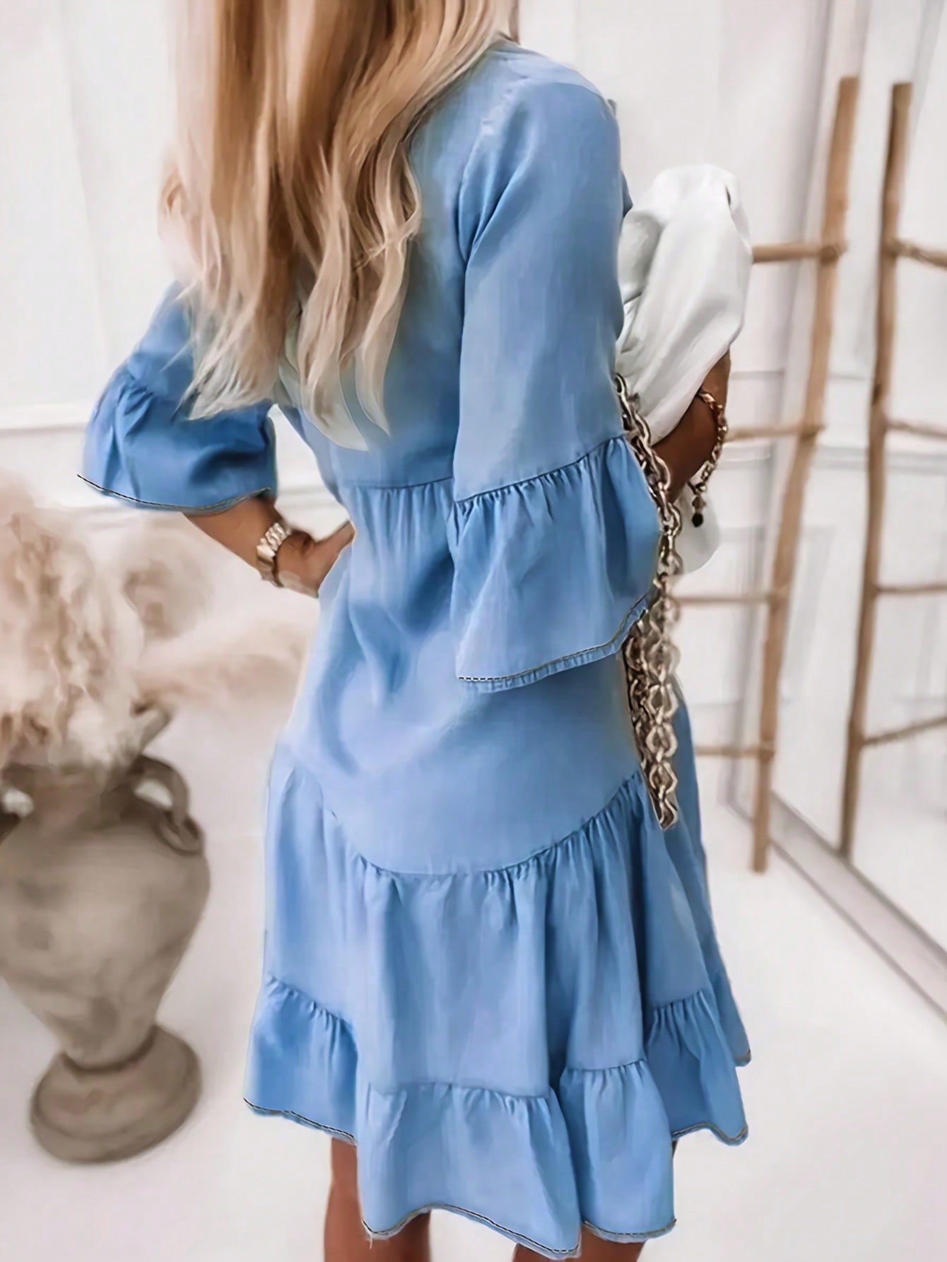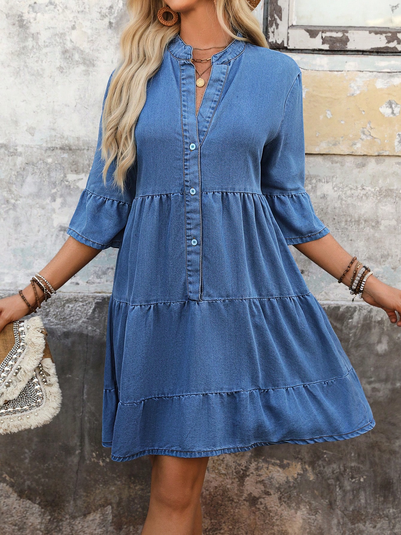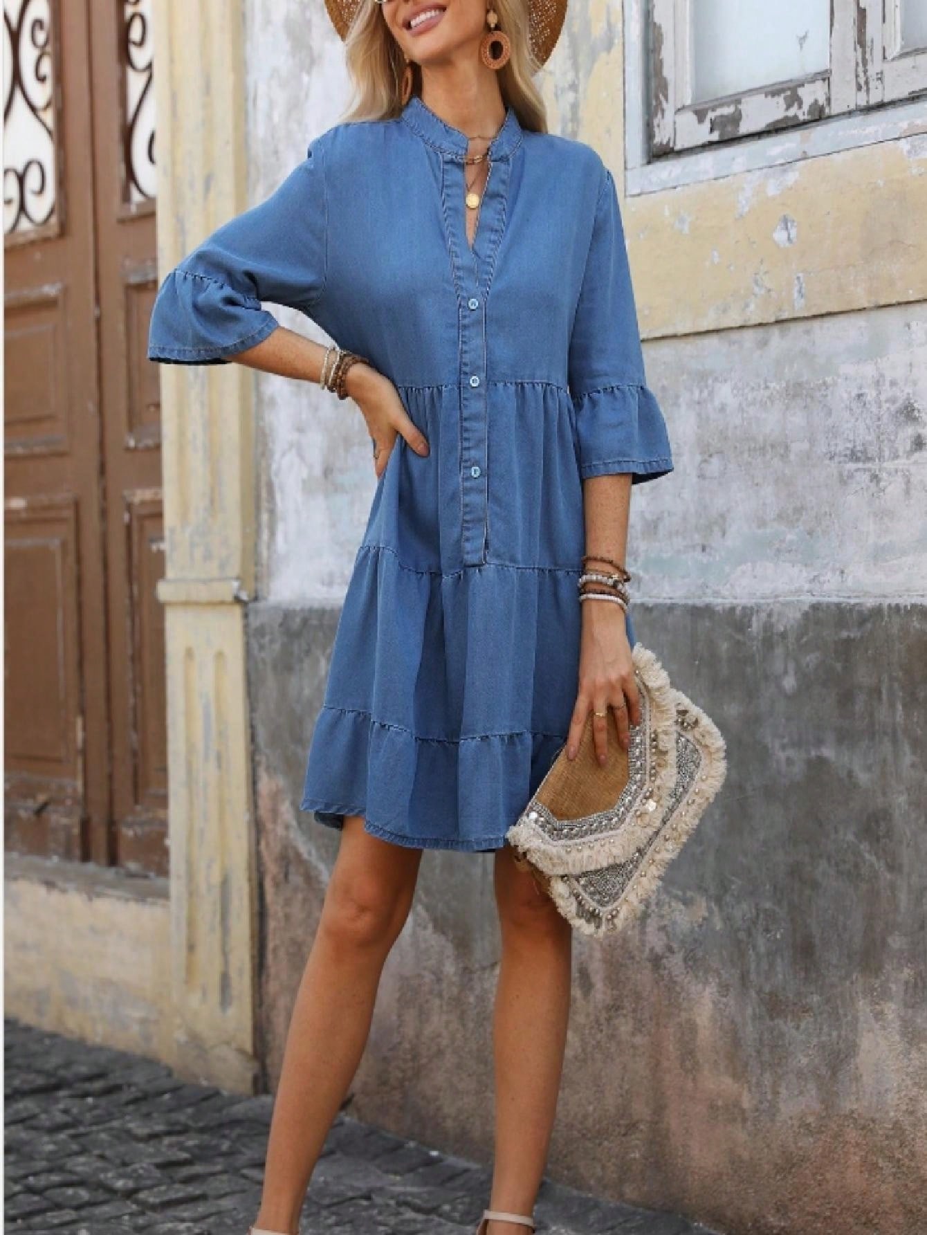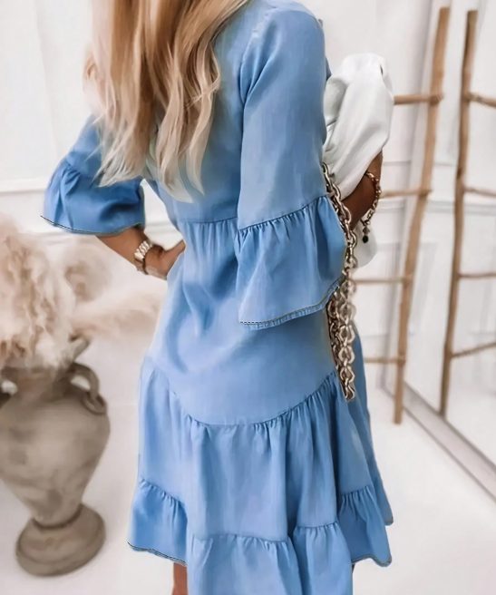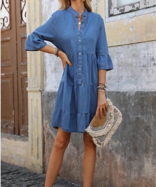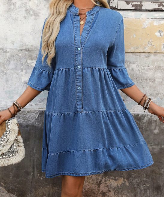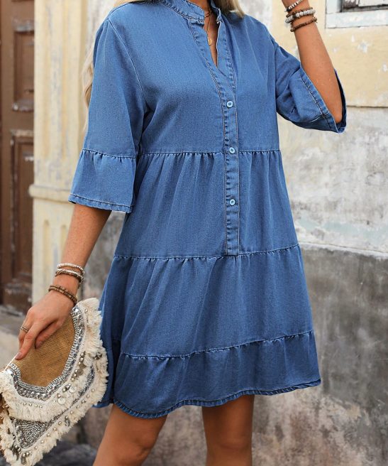 Be the first to review “Women’s Elegant Tiered Denim Dress V Neck Long Sleeve Button” Cancel reply