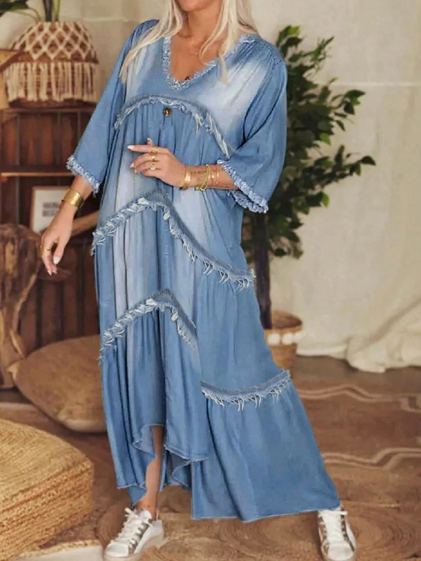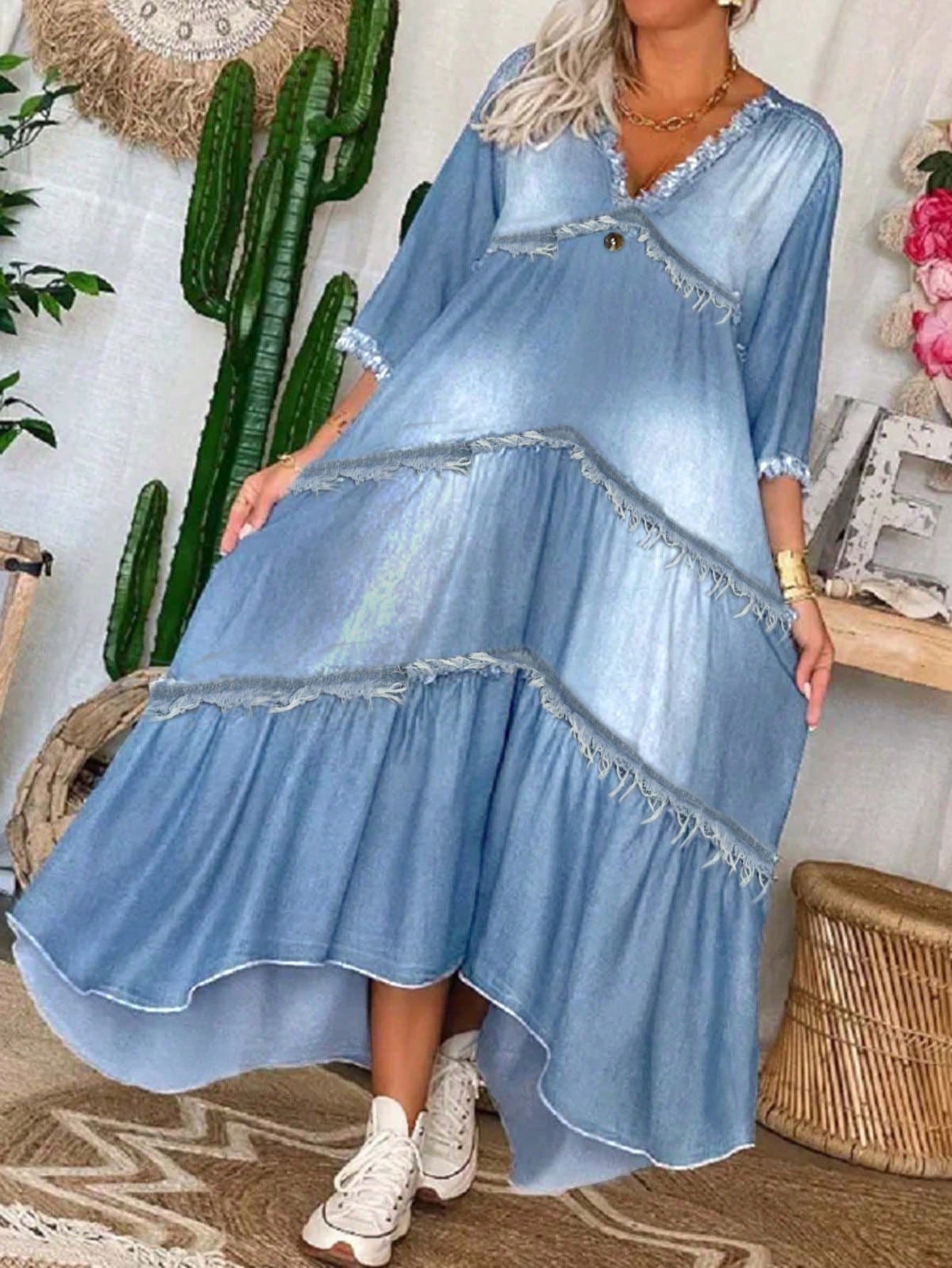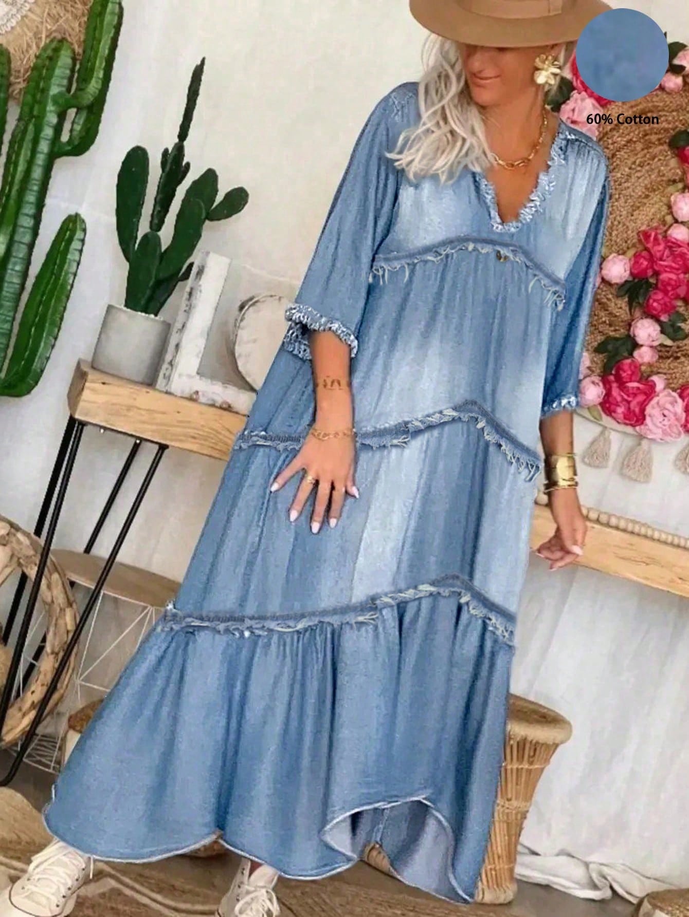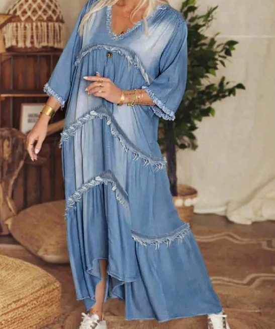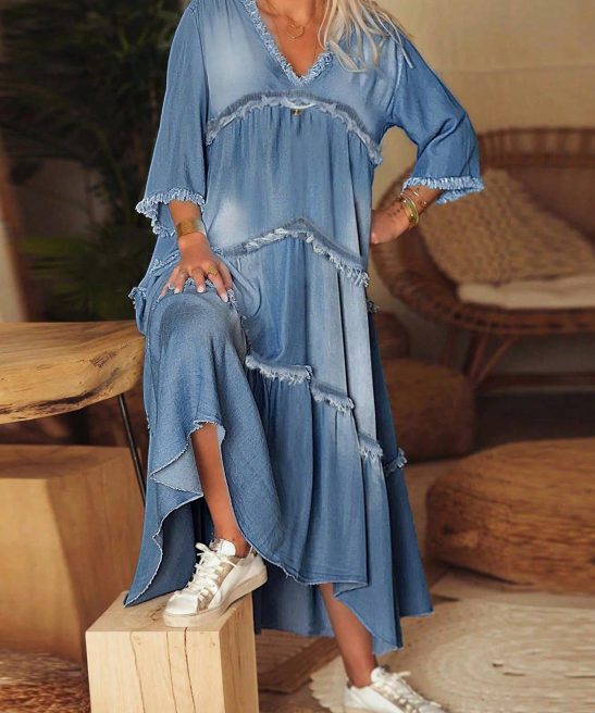 Be the first to review “Women’s Long Denim Dress Casual Loose Pleated Mid Sleeve V-Neck Jeans Long Skirt” Cancel reply