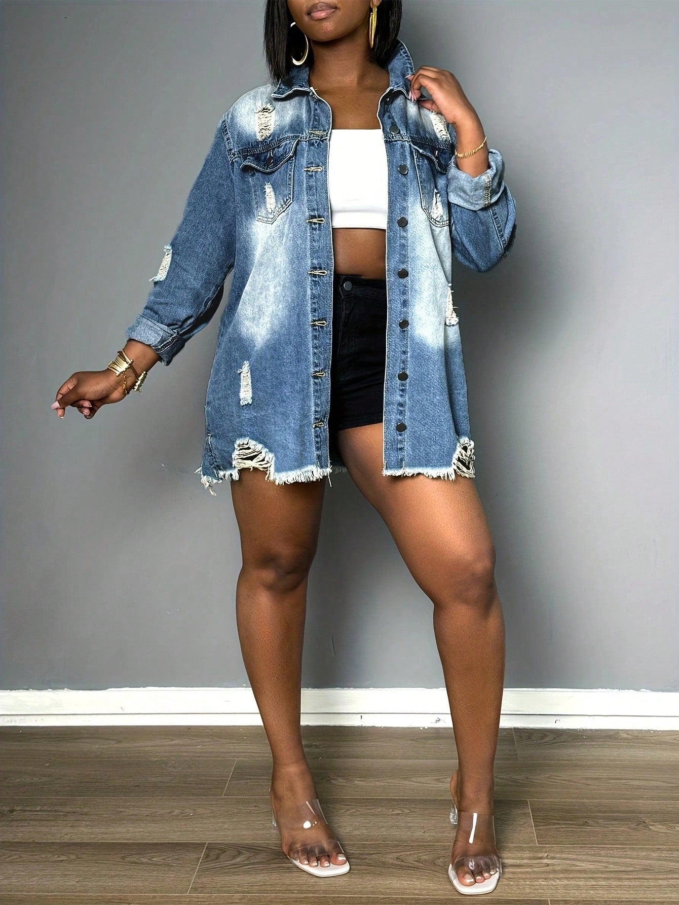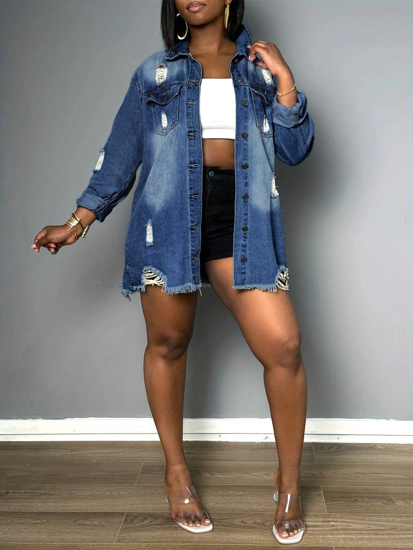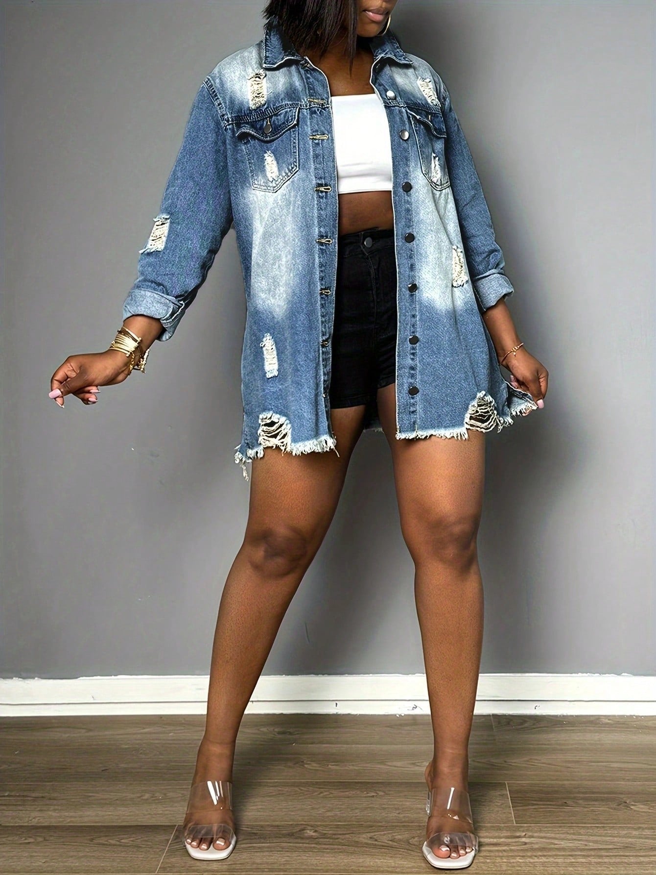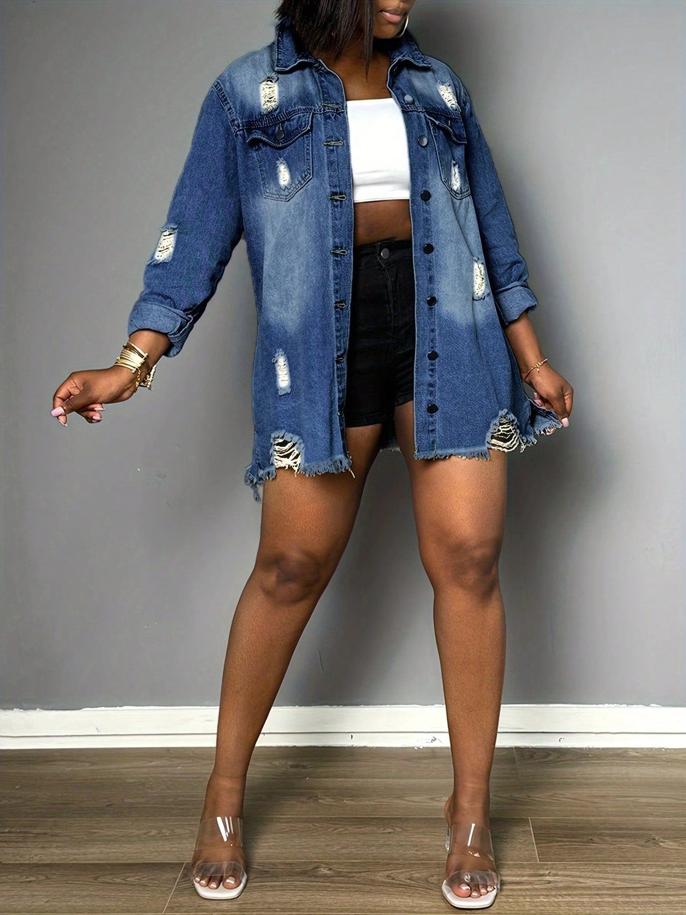 Womens Denim Shorts With Pockets Ripped Frayed Skinny Fit Zipper Closure Sexy Style For Summer