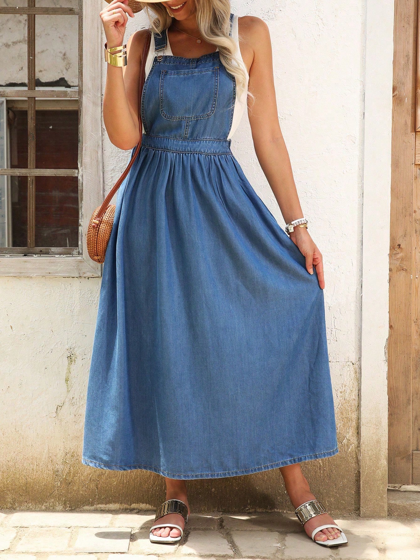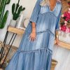 Women’s Slim Fit Deep Blue Denim Jumper Dress With Adjustable Belt