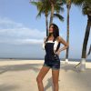 Curled edge design: The curled edge design at the hem of the pants is a major feature of this jumpsuit. It breaks the straight lines of conventional denim jumpsuits. adding a sense of casualness and playfulness to the overall look. At the same time. it can also visually shorten the leg lines. making the legs look more delicate.
