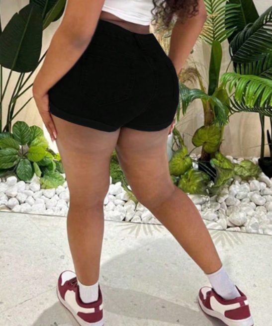 The ripped denim shorts are designed with elastic fabric that fits snugly against the waistline. providing a seamless fit that makes you feel comfortable while exercising or sitting down